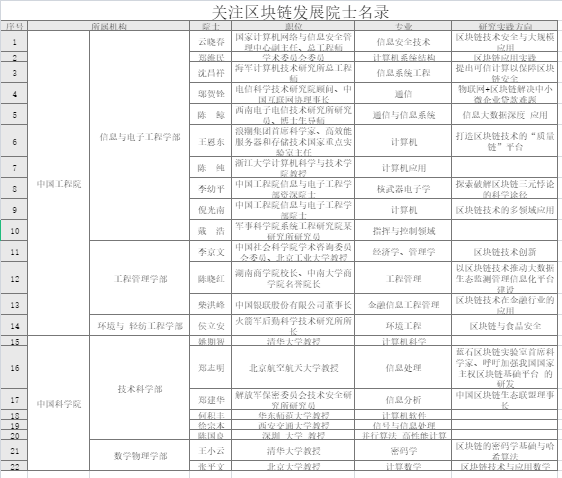 10月22日下午“区块链院士会议暨链改论坛“定向拟邀名单: