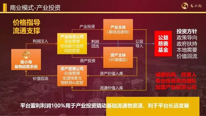 余量经济领域的流通支撑正是基于易小淘易物结算系统所产生利润100%进入的产业投资实体,由产业投资对赌产生的价值回流及预期回收流动性来确定有效流通支撑。