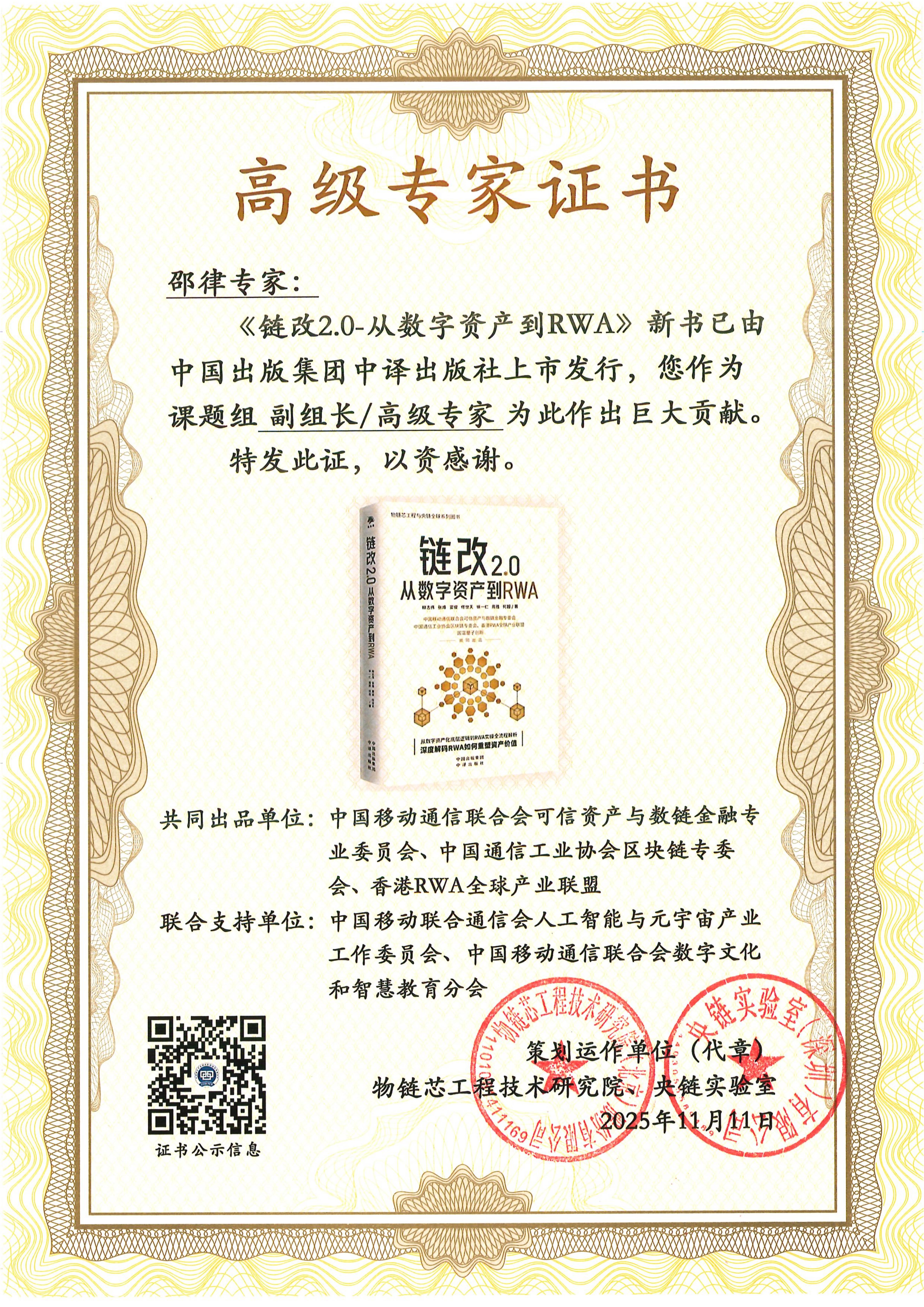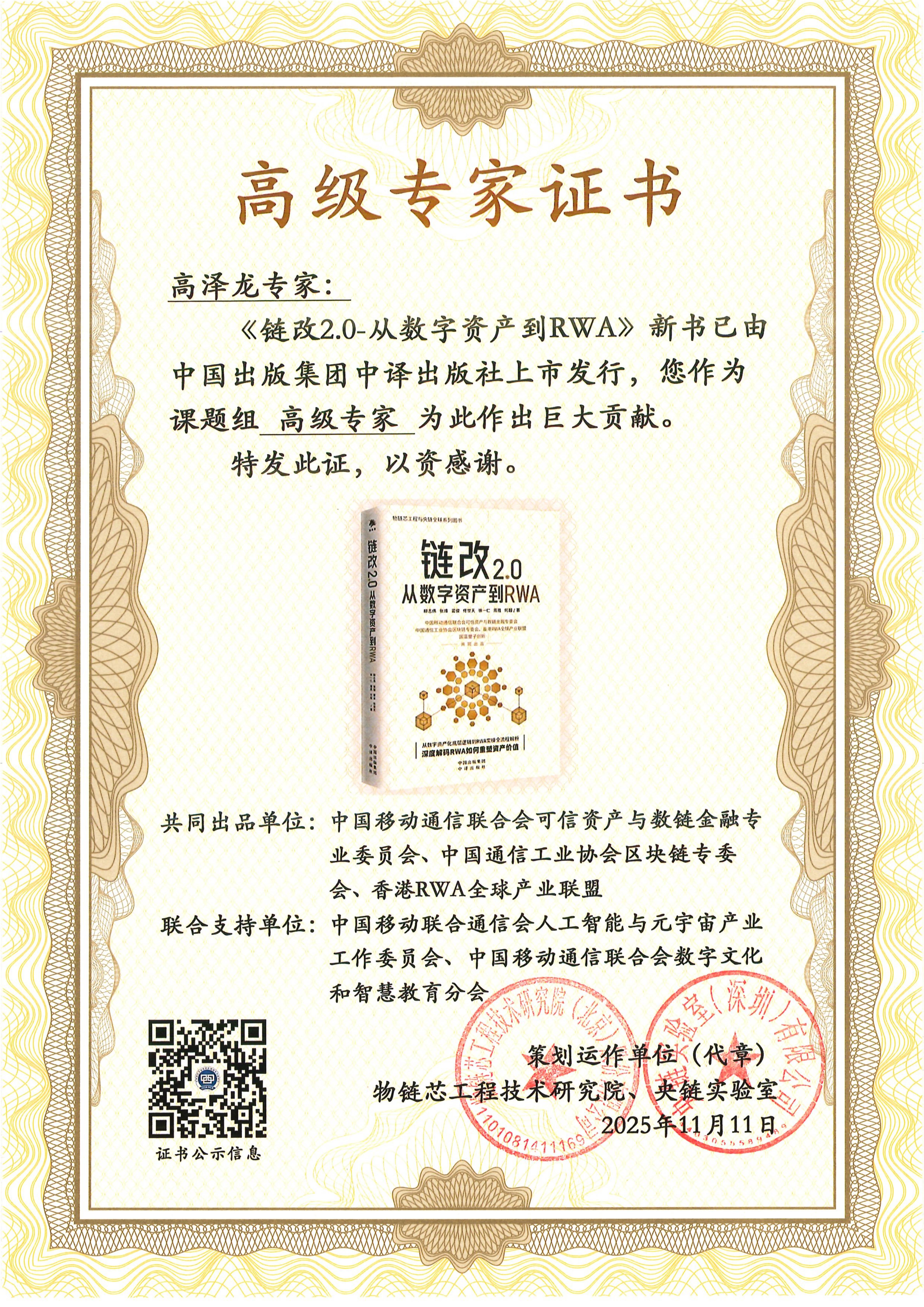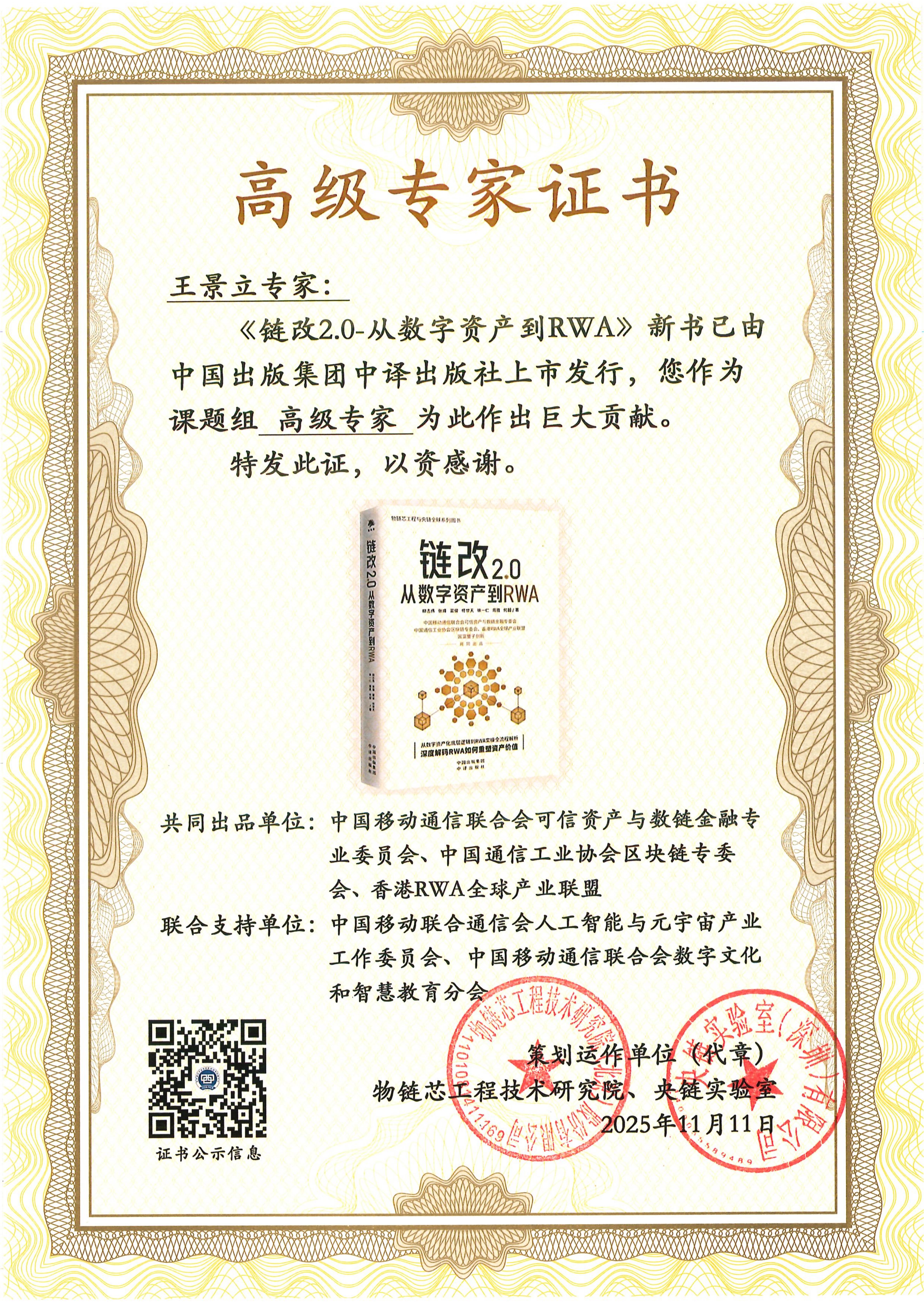 《链改 2.0——从数字资产到RWA》新书重磅上市 首批36位行业专家获颁高级专家证书