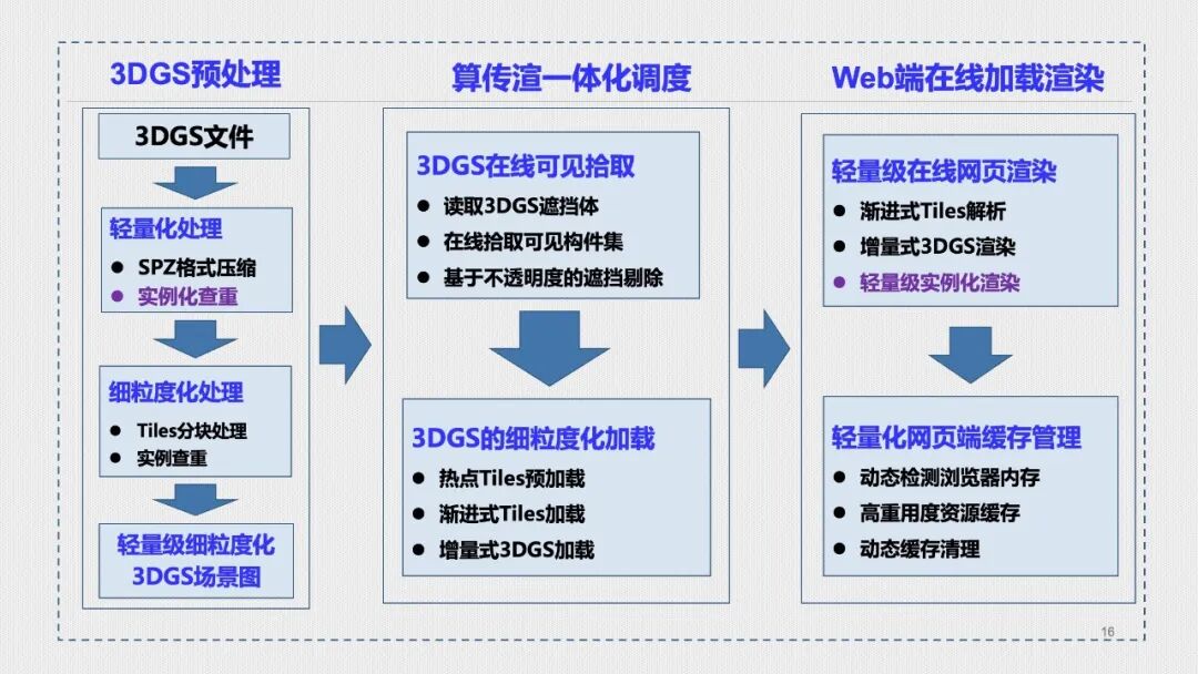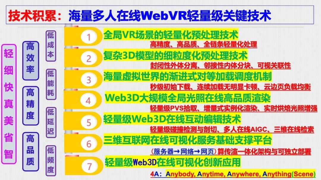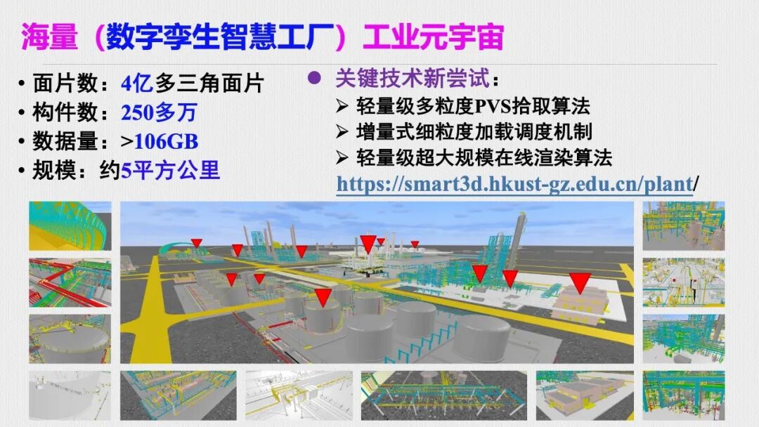 - 轻量化路径:通过预处理(如模型细粒度分割)、渐进式加载调度机制(如可见性优先加载)及实例化渲染,实现“三高四低”(高效率、高精度、高品质;低成本、低能耗、低延迟、低频度)。