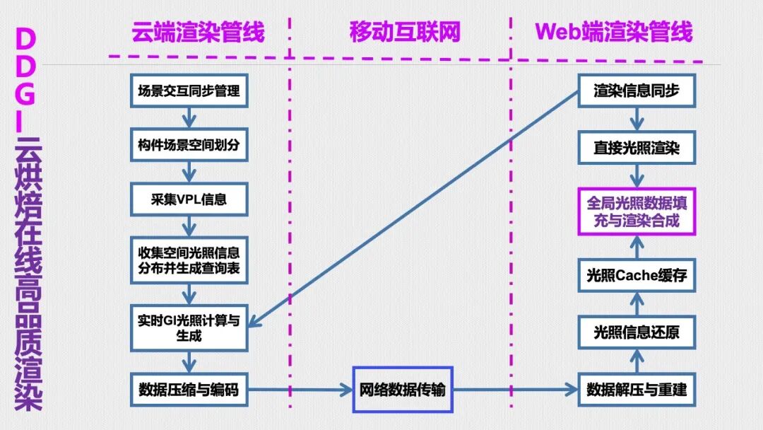 贾教授解释,云渲染将全部计算置于云端,成本高昂;而云烘焙将间接光照预处理为轻量贴图传输至网页端,与直接光照融合,实现算力再分配,功耗降低75%以上。